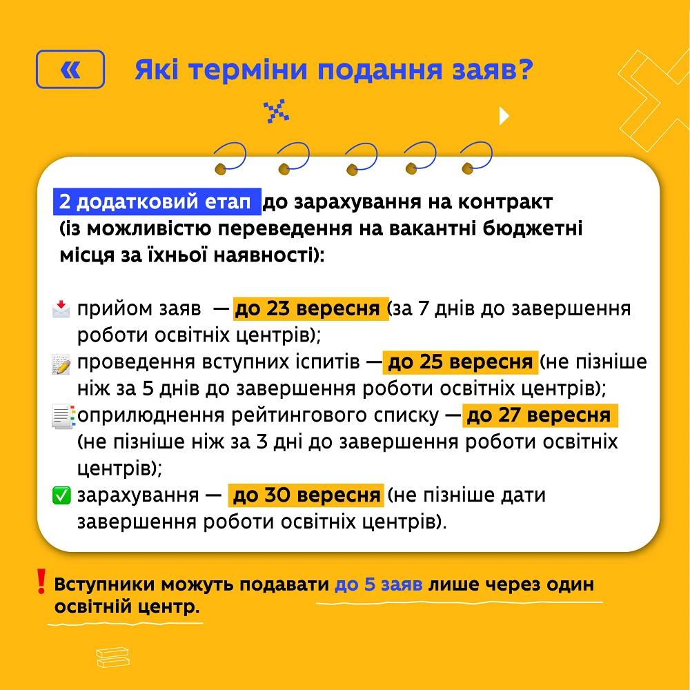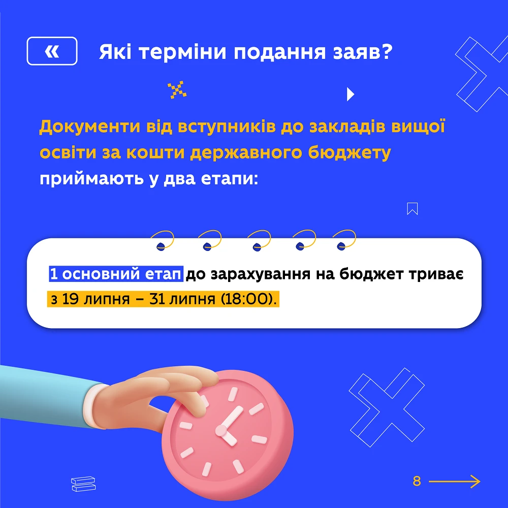 - Складіть вступні випробування замість НМТ на бюджет з 08 по 19 липня 2024 року, за контрактною формою з 08 до 31 липня 2024 року.
